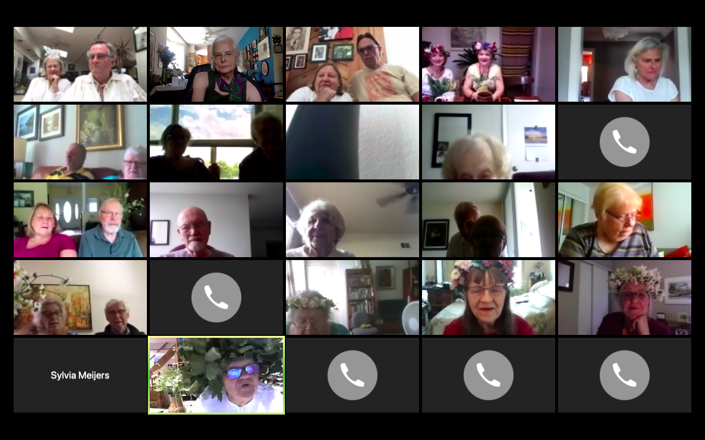 Gatherings are held once a week, on Thursdays starting 9:00 to give time for various activities before lunch and entertainment and educational programs which start at noon.